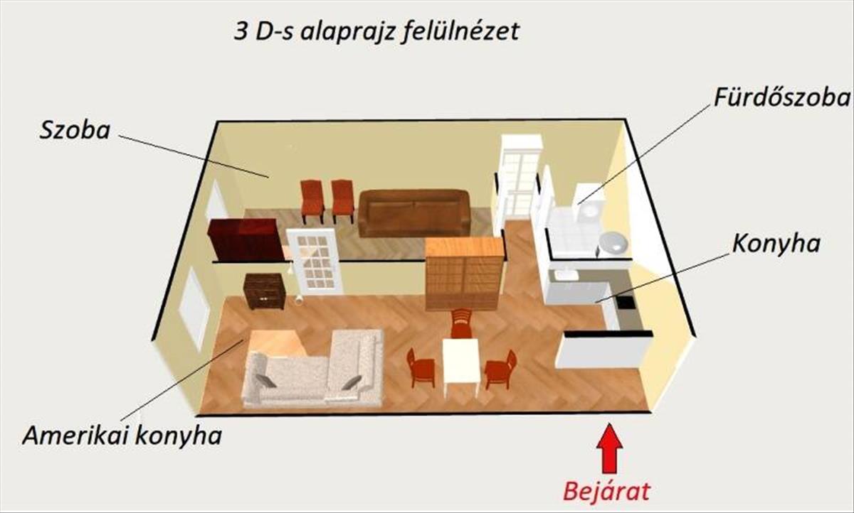 ✔️ amerikai konyhás nappali + külön hálószoba