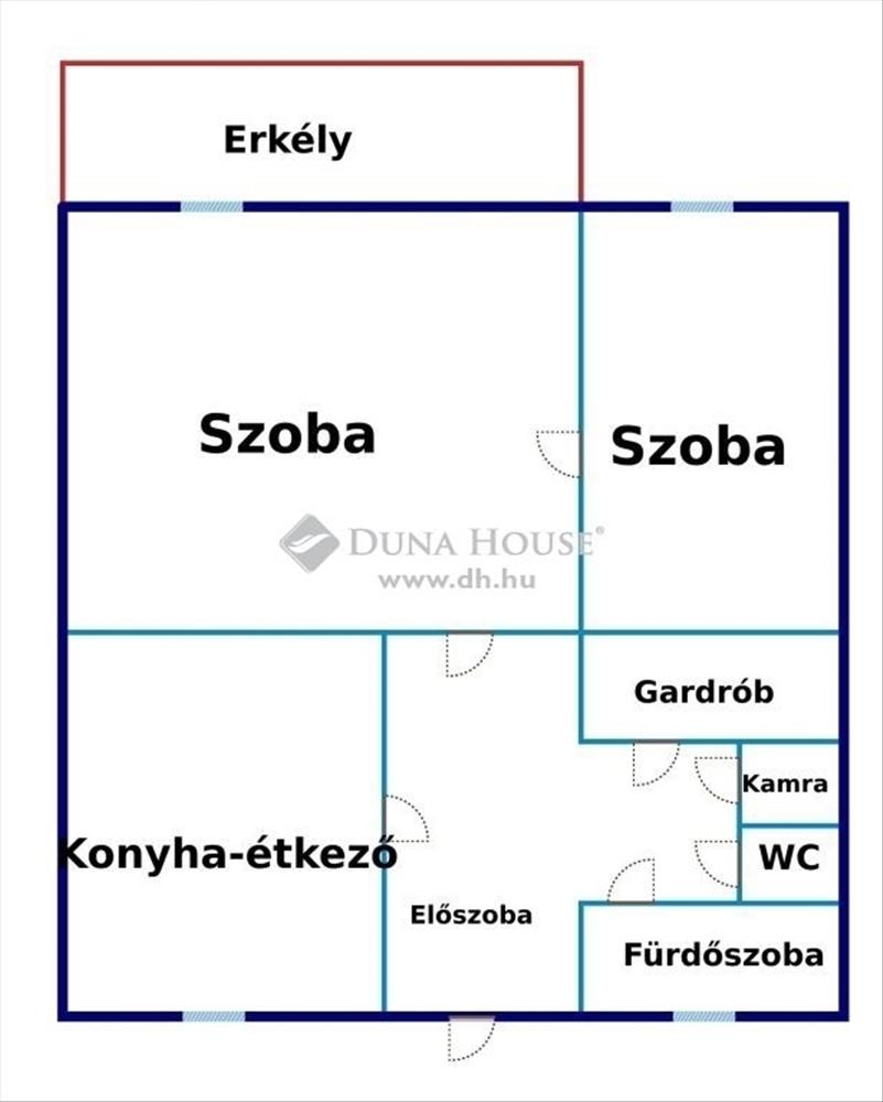 Az ingatlan 55 m2-es, 2 szobás, gardróbos, kamra, fürdőszoba, wc, konyha-étkező, előszoba helyiségekből áll.