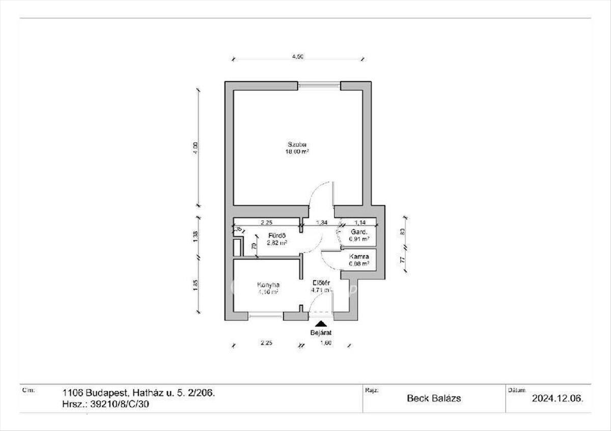 Az ingatlan főbb jellemzői: 31 nm alapterület, 1 szoba, külön konyha, fürdőszoba, külön tároló, tégla építésű társasház, teljesen felújítandó állapot, saját igény szerint alakítható, műanyag nyílászárók (ablakok és bejárati ajtó már cserélve) külön mérőórák: villany, víz, gáz, második emeleti lakás.