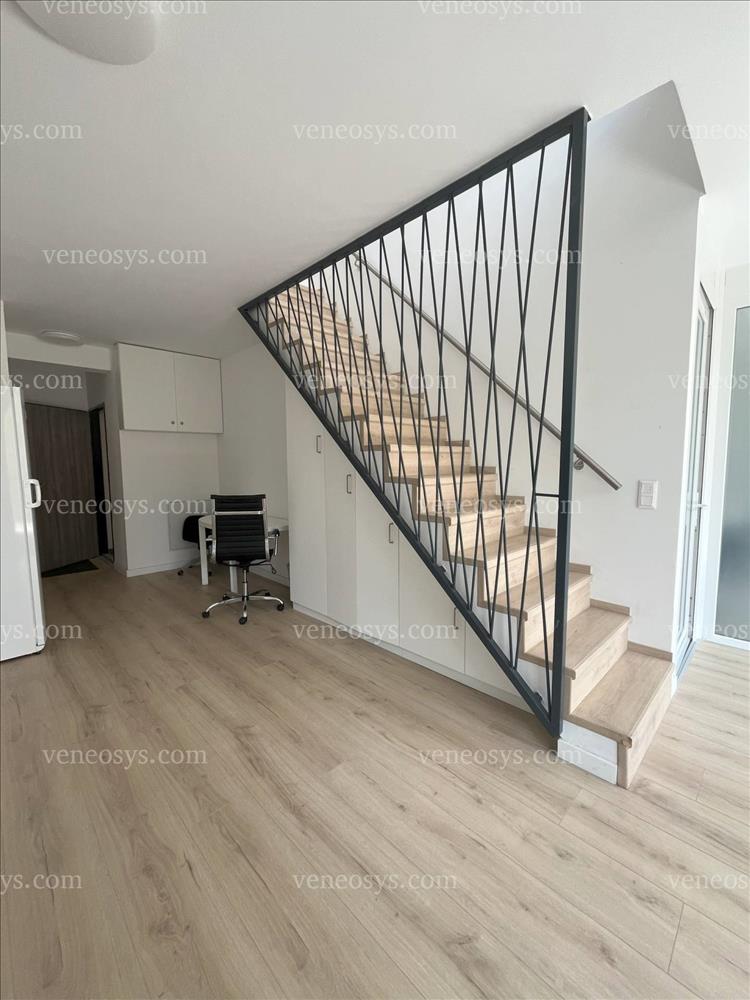 A nettó 114 m2-es lakótérben, az alsó szinten közel 23 m2-es konyha-étkező-közösségi tér, továbbá egy 14 m2-es szoba/tárgyaló, 1 mosdó, valamint összesen 16 m2-es erkély található; míg a felső szinten 69 m2-es lakó/közösségi tér, továbbá 1 fürdőszoba mellékhelyiséggel és 3 erkély található, mely utóbbi összesen 21 m2.