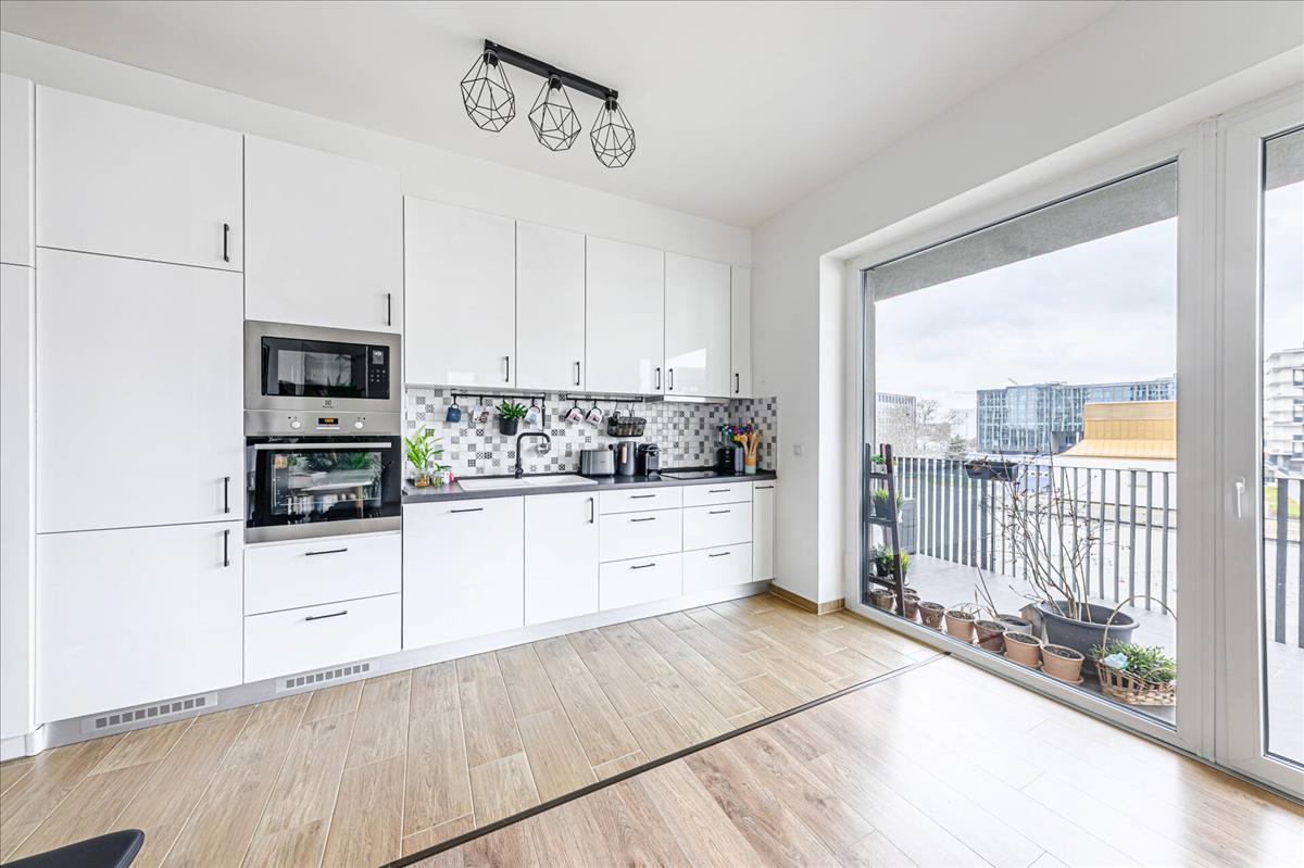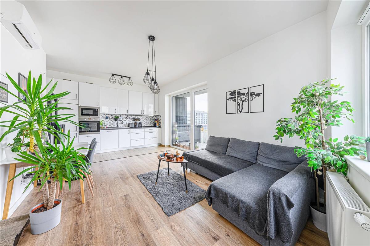 A 2020-ben épült, harmadik emeleti lakás belső tereit a nagy üvegfelületeknek köszönhetően egész nap átjárja a természetes fény, a praktikus elosztás pedig kényelmes életteret biztosít. Az amerikai konyhás nappali és a különálló hálószoba mellett a lakás egyik legnagyobb vonzereje a hatalmas terasz, amely ideális helyszín a pihenésre.