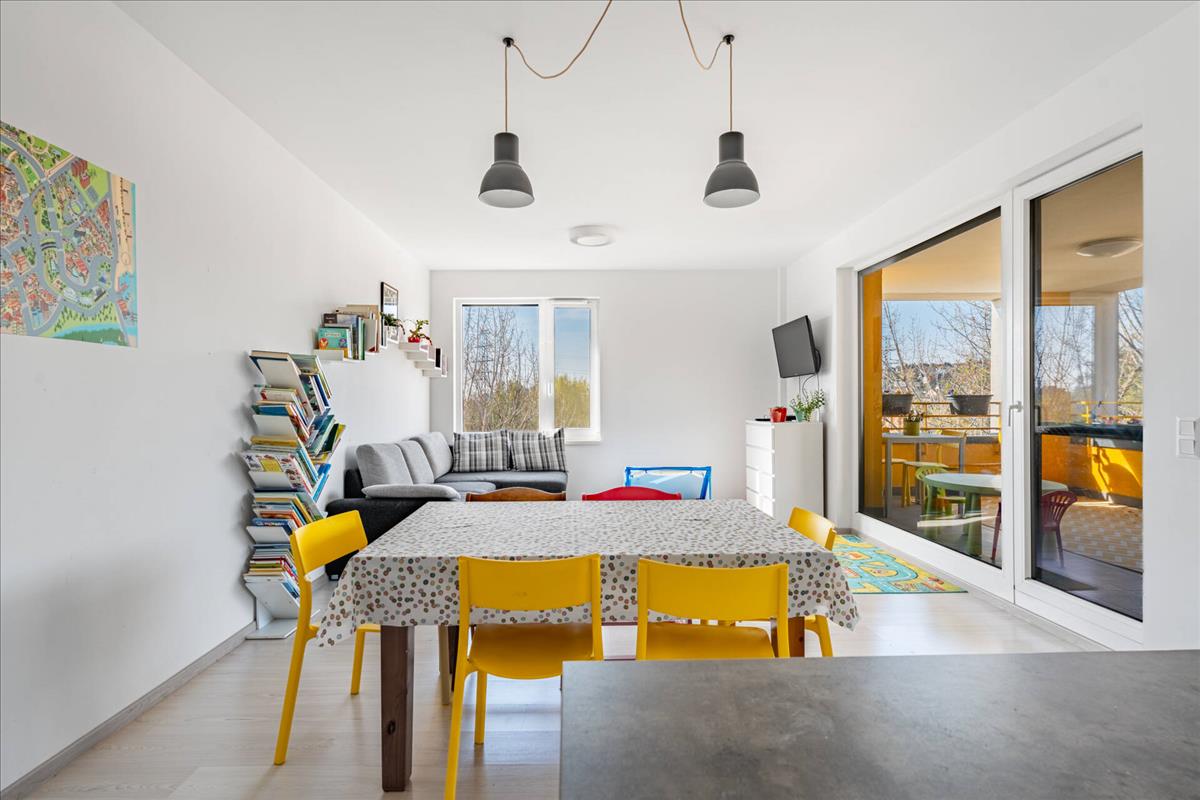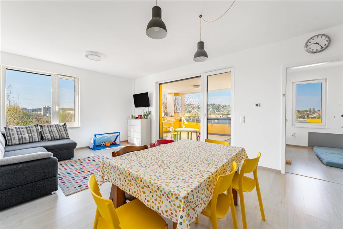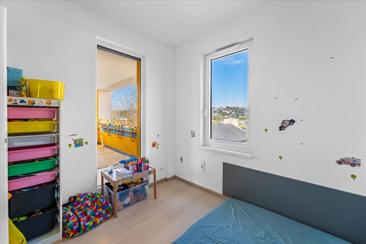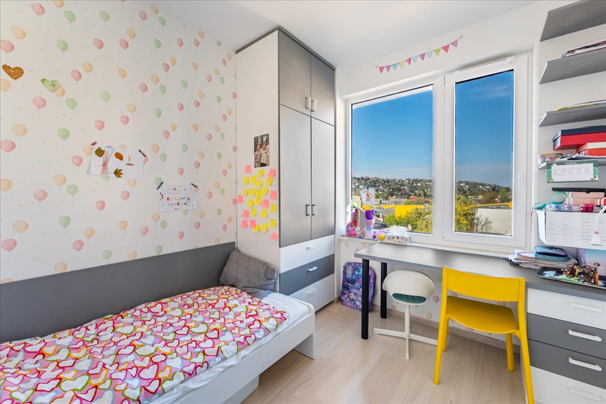 Megvételre kínáljuk a méltán kedvelt Tetris Házban található, 5. emeleti, Budai hegyekre panorámás, nappali + 3 hálószobás, 80 m²-es + 13 m² fedett loggiás, napfényes, remek állapotú lakást, zuhanyzós és kádas fürdővel, tágas terekkel, mennyezeti hűtés-fűtéssel, 2018-ban épült modern társasházban.