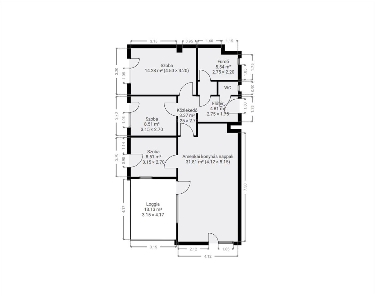 A lakás elosztása kiváló, a nappali és a három külön nyíló hálószoba ideális családok számára is, miközben befektetési szempontból is jól kiadható kialakítást biztosít.