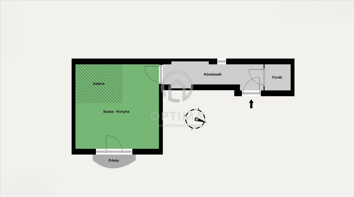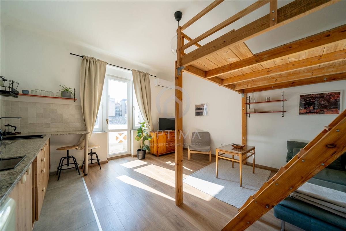 A lakás alapterülete 25 m², amelyhez egy 5 m²-es fekvőgaléria kapcsolódik, így a tér a méretéhez képest kényelmesen és praktikusan használható. a IV. emeleten található, déli fekvésének köszönhetően napfényes, kellemes hangulatú lakáshoz egy jól használható erkély is tartozik.