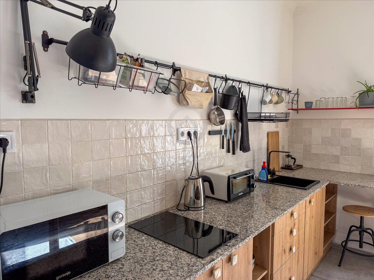A lakás teljes berendezéssel eladó, így a bútorok és a beépített konyha is a vételár részét képezik. Ez különösen előnyös lehet annak, aki saját részre keres egy azonnal használható otthont, de annak is, aki gyorsan kiadható ingatlanban gondolkodik. a műszaki felszereltség része a hűtő-fűtő klíma, az elektromos fűtőpanel, valamint a modern, takarékos Ariston villanybojler.