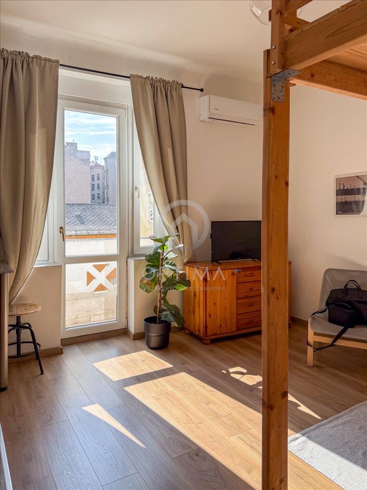 Világos, erkélyes garzon TETŐTERASSZAL