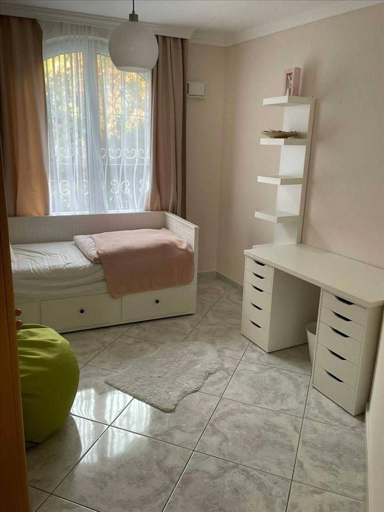 A nappaliból közvetlen kijárat nyílik a teraszra, amely a közös kert egy csendes, eldugott részén található, teljes intimitást és nyugalmat biztosítva.