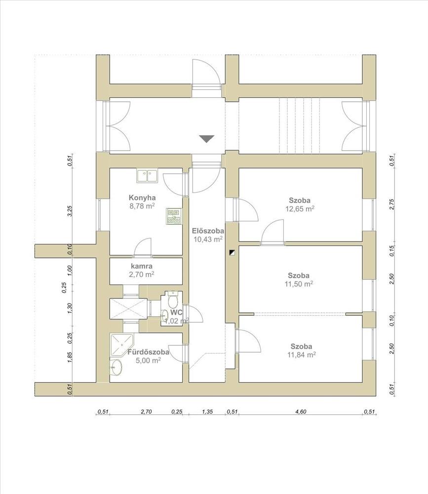 Kisebb átalakítással könnyedén modern, kényelmes otthon alakítható ki, a remek beosztás miatt akár család számára is ideális.