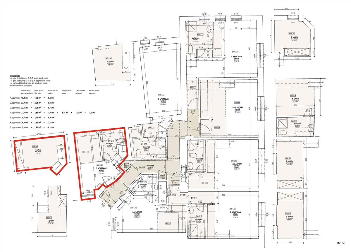 Az ingatlan tehermentes, osztatlan közös tulajdon, ügyvédi megosztással, két nagyobb lakásból kialakított, összesen hétlakásos kialakítás részeként jött létre, az alaprajzon pirossal jelölve egyértelműen beazonosítható, hogy pontosan melyik lakás kerül értékesítésre.