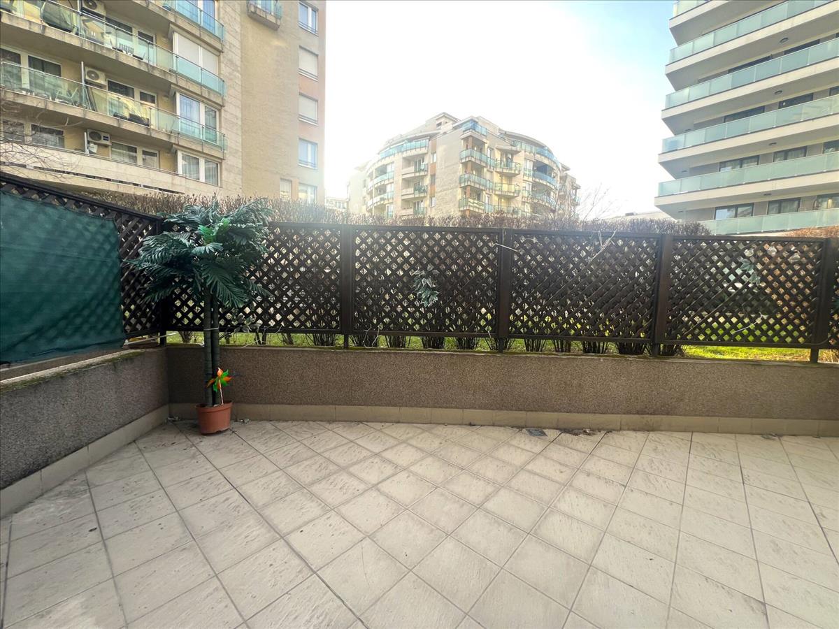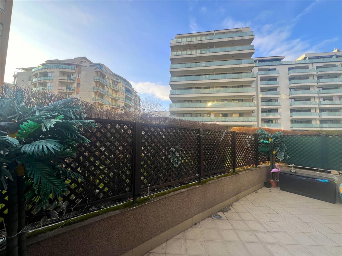 Belső udvarra néző, nagy teraszos lakás a Centrál Parkban.