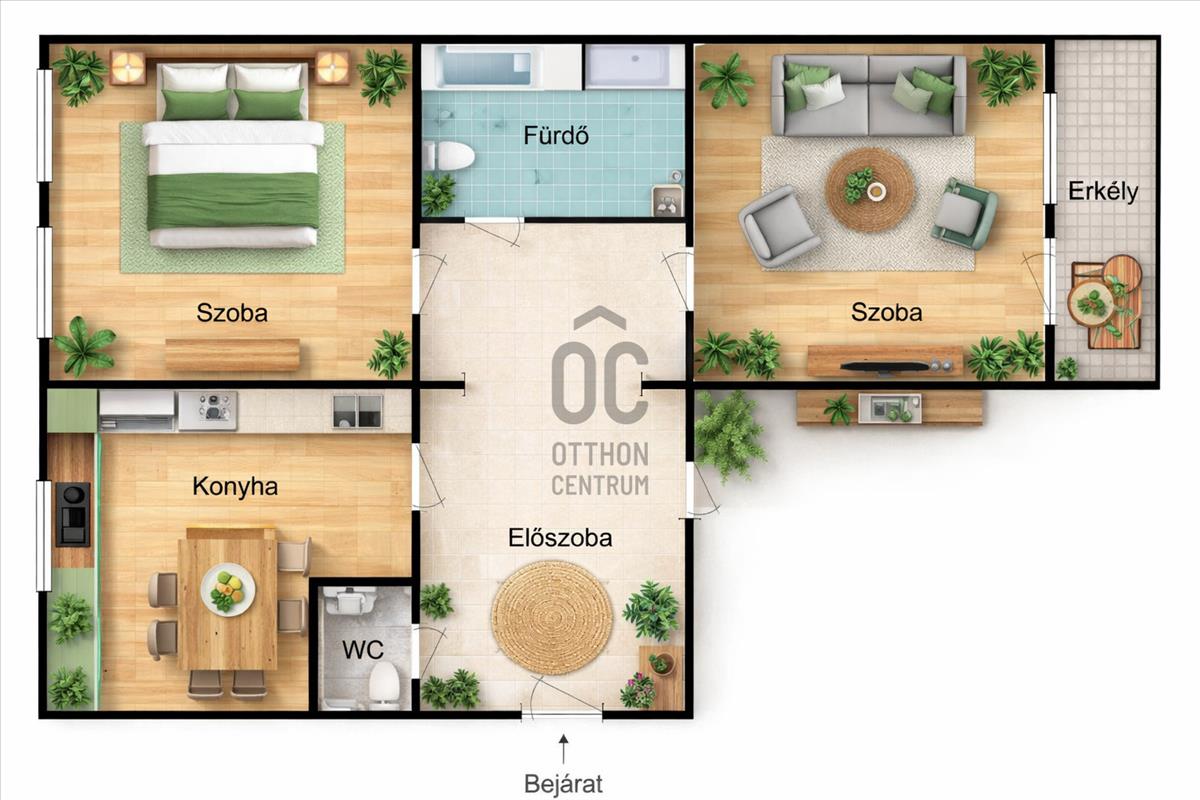 - 2 különnyíló szoba található --> a nagyobbik szobához tartozik egy erkély is