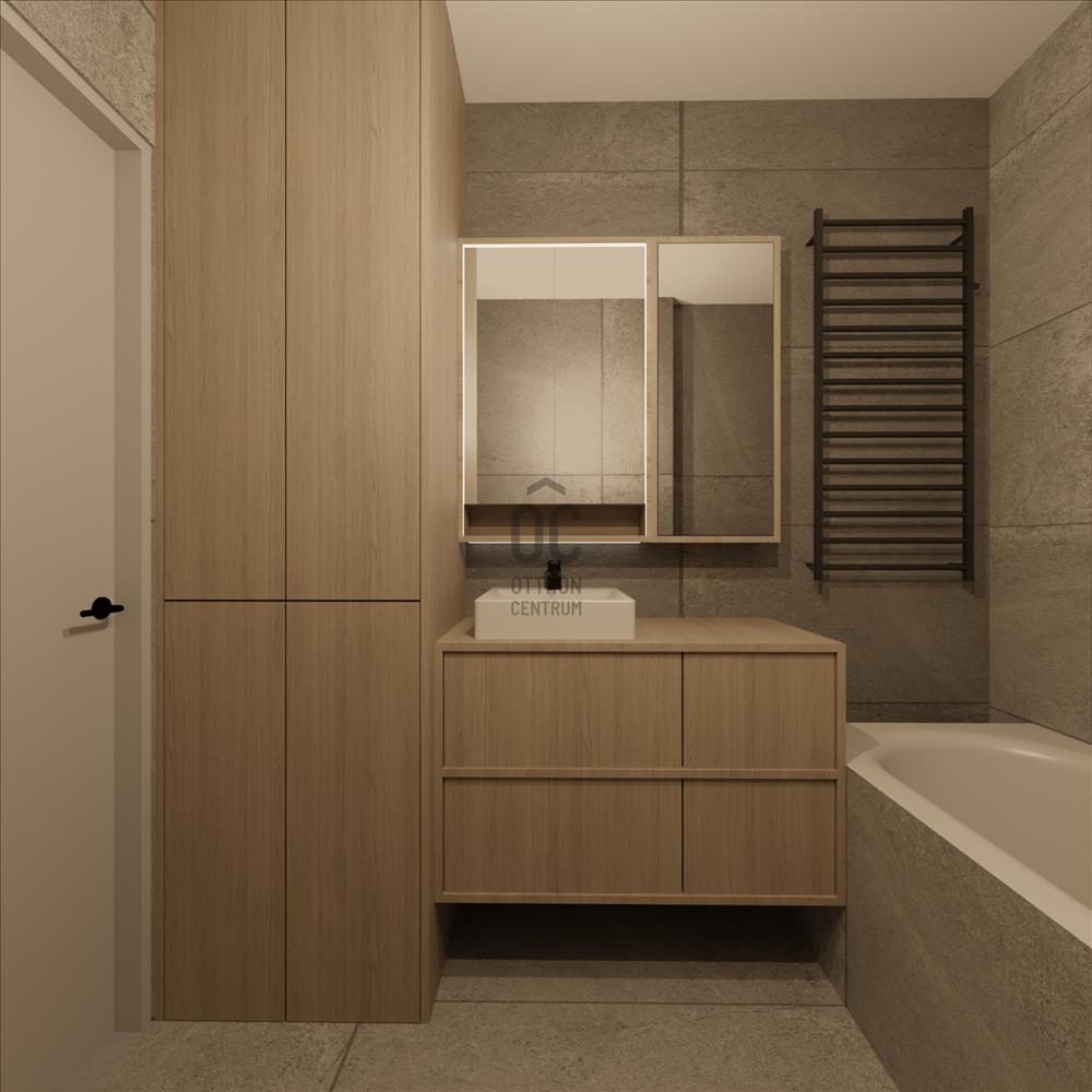 A lakásban két modern fürdőszoba található, amelyek kényelmet és praktikus megoldásokat kínálnak a mindennapok során.