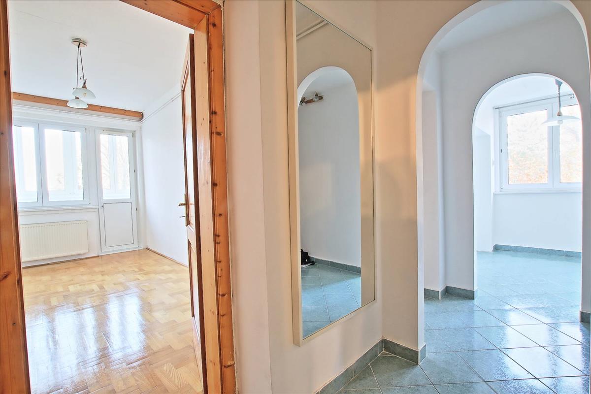 A lakásba belépve egy előszobába érkezünk, ahonnan az összes helyiség elérhető. a napfényes szobák eredeti fa parketta burkolatát néhány hete újították fel. Mindkét szobából szigetelt nyílászárókon keresztül juthatunk ki a beépített erkélyre, melyről a ház előtti kertre nyílik kilátás.