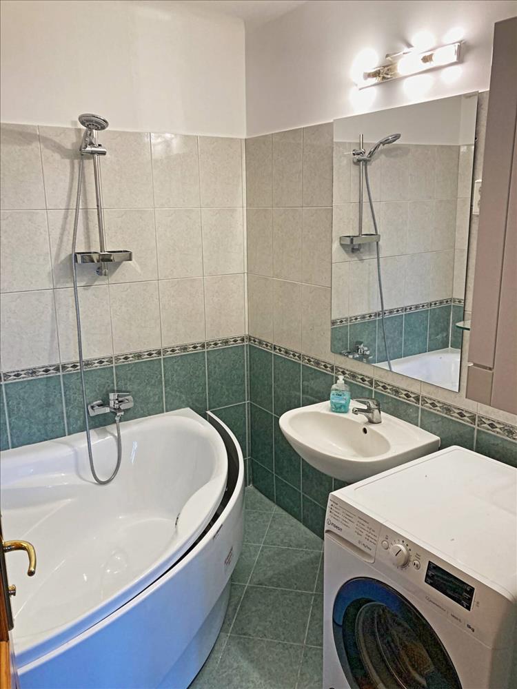 A fürdőszobában egy frissen beépített sarokkád szolgálja a tulajdonos kényelmét. Az impozáns méretű, étkezős konyha alkalmas akár nagyobb családi vacsorák lebonyolítására is, de kis átalakítással leválasztható belőle egy kisebb szoba is.