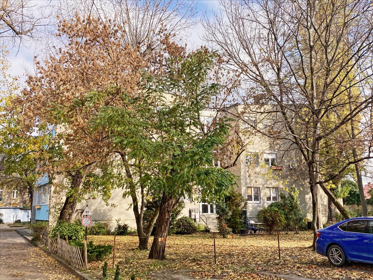 A lakás egy jó állapotú, lift nélküli, 2 emeletes társasházban található. a ház anyagilag stabil helyzetű, a közösségi terek szép állapotúak és a lakóközösség rendezett. Az épületet kívülről egy éve szigetelték és színezték. a ház egy zárt, hatalmas fákkal beültetett, parkosított területen helyezkedik el, ahova csak a lakók mehetnek be. a zárt területen összesen hat ház helyezkedik el, a házak között nem csak fák és virágok, hanem játszótér és parkolóhelyek is helyet kaptak.