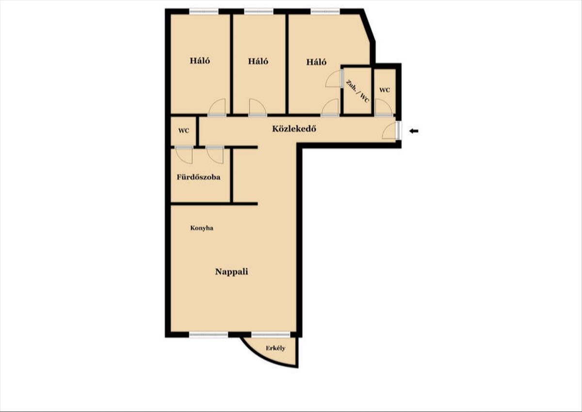 * Kialakítás: nappali + 3 hálószoba