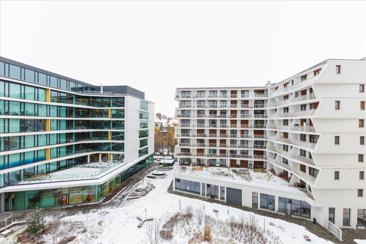 A lakás egy modern, liftes társasházban található, kulturált lakóközösséggel, rendezett közös terekkel, 24 órás portaszolgálattal és kamerarendszerrel.