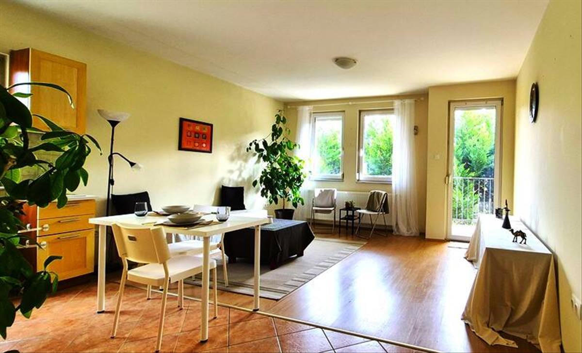 Az amerikai konyhás nappaliból egy erkélyre léphetünk ki, amely a zárt, csendes belső kertre néz – tökéletes helyszín egy reggeli kávéhoz vagy esti kikapcsolódáshoz.