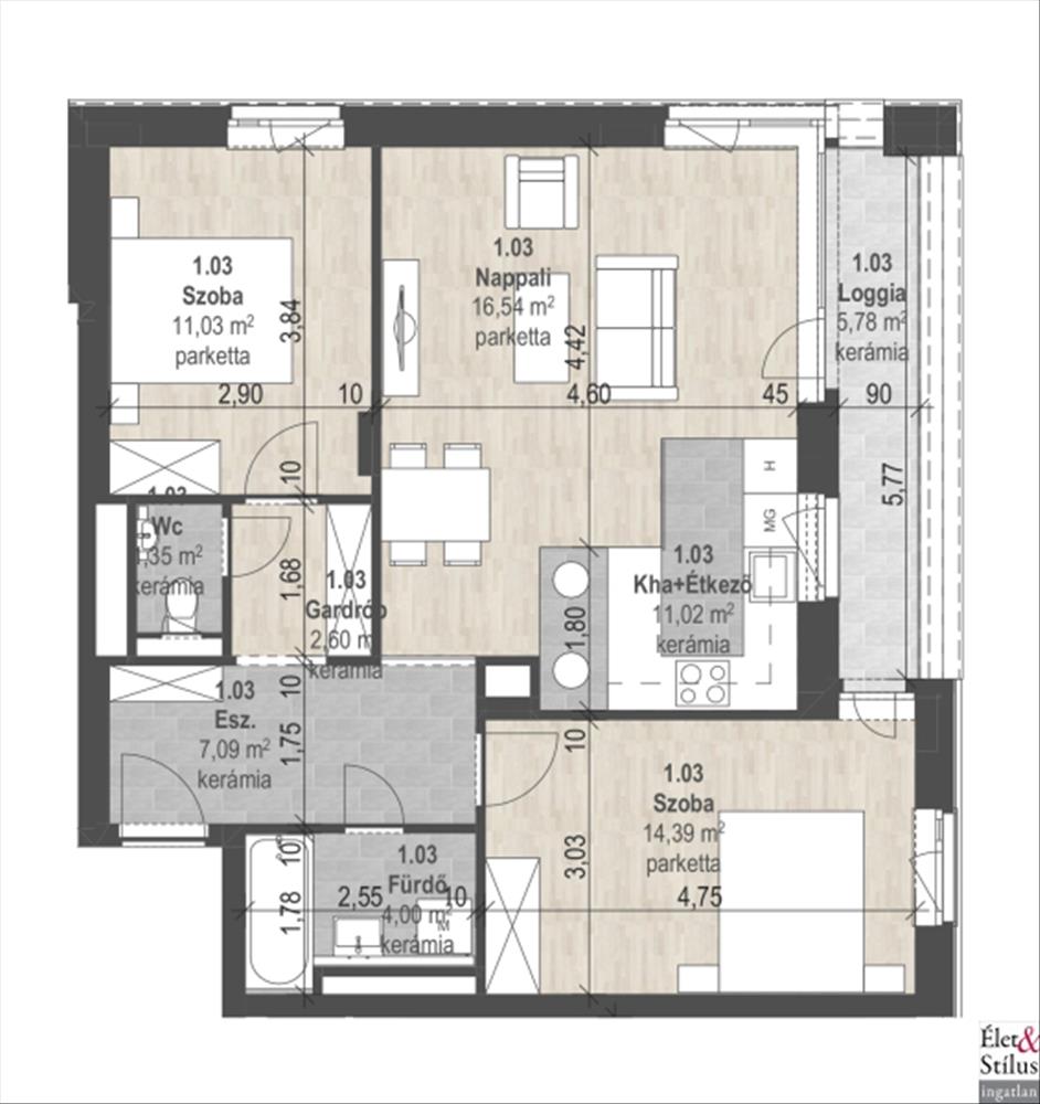 A kulcsrakész lakások, 2 szobás 39-43 nm ; 3 szobás 68-76 nm és 4 szobás 79-93 nm nagyságban kerülnek kialakításra.