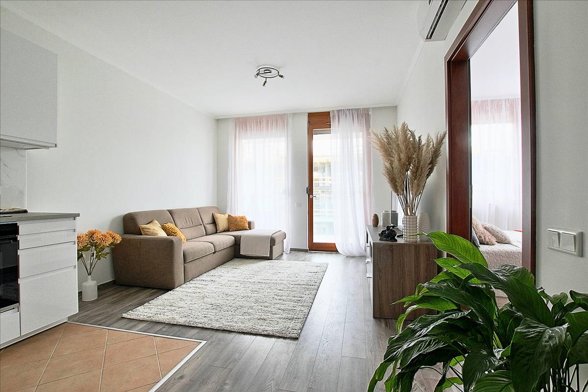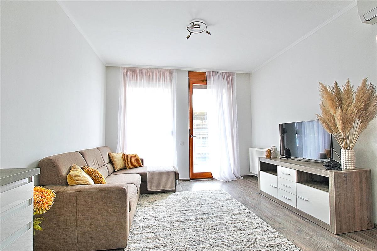 A közelmúltban történt esztétikai felújításnak köszönhetően a lakás állapota valóban újszerűnek mondható. Kis előtérből nyílik az ablakos fürdőszoba, aminek méretéből adódóan kényelmesen elfér a mosógép és akár egy szárító is. a wc külön került kialakításra egy kisebb kézmosóval és ez a helyiség is kényelmes méretű, nem szűkös. Az amerikai konyha jól pozícionált, teljesen gépesített, a nappali funkciójába nem zavar be. Hálószobája két irányból ablakos így rendkívül kellemes hangulatú és a nagy méretű francia-ágy mellett még egy teljes értékű gardrób szekrény is elfér. a nappaliból nyíló 10m2-es terasz pedig kiválóan alkalmas kisebb családi étkezésekre vagy egy-egy kellemes reggeli/esti kiülésre, relaxációs időtöltésre.