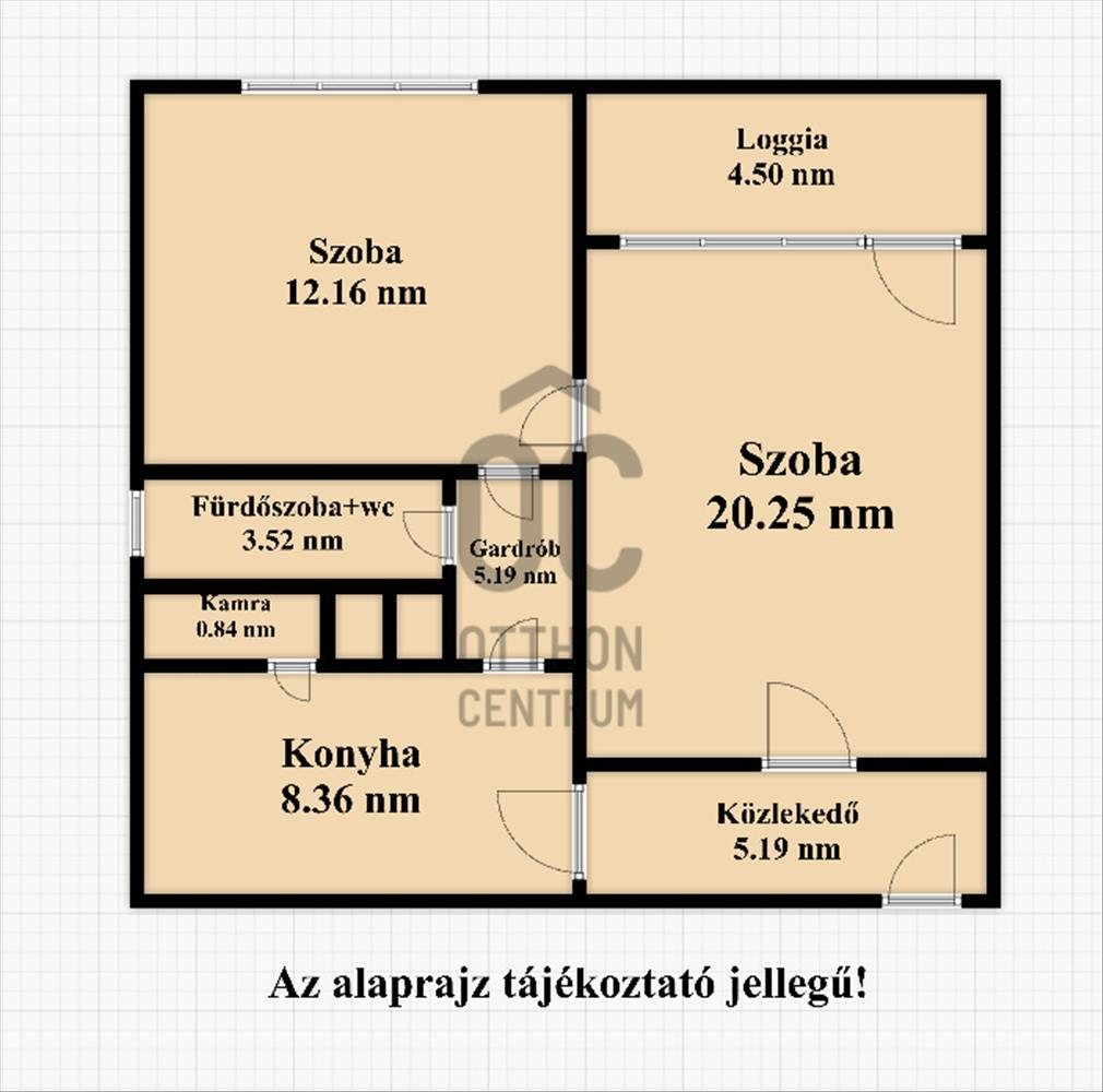 • a két szoba ( 20, 2 nm és 12, 16nm) nyugati fekvésű és külön nyíló.