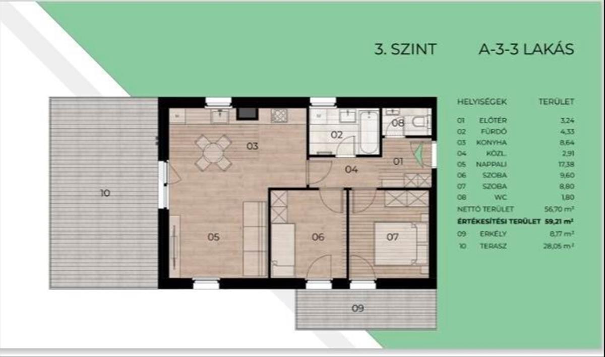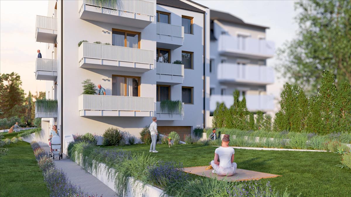 Ez az ingatlan ideális választás mindazok számára, akik a modern műszaki megoldásokat a kertvárosi nyugalommal szeretnék ötvözni. a lakás 56, 7 m²-es, átgondolt elrendezésű lakótérrel rendelkezik, amelyhez két terasz is kapcsolódik, egy 8 m²-es és egy tágas, 28 m²-es, így a lakók számára valódi életteret biztosít a szabadban is.