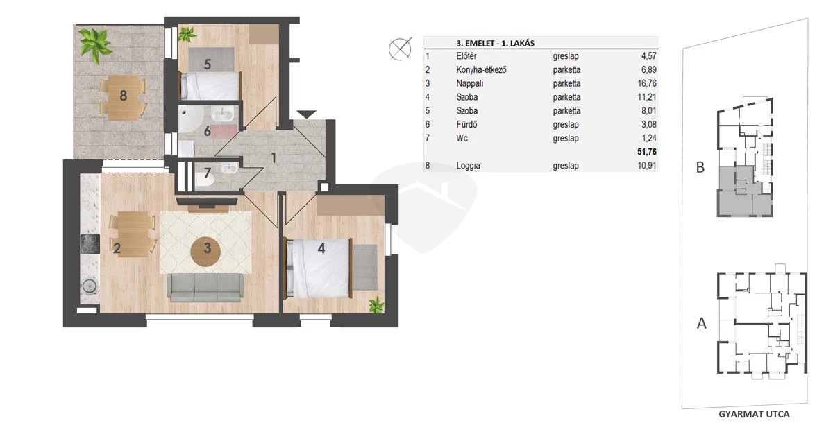 • Alapterület:57 m2