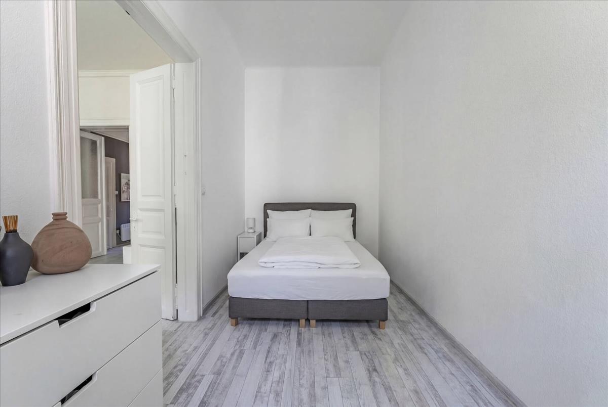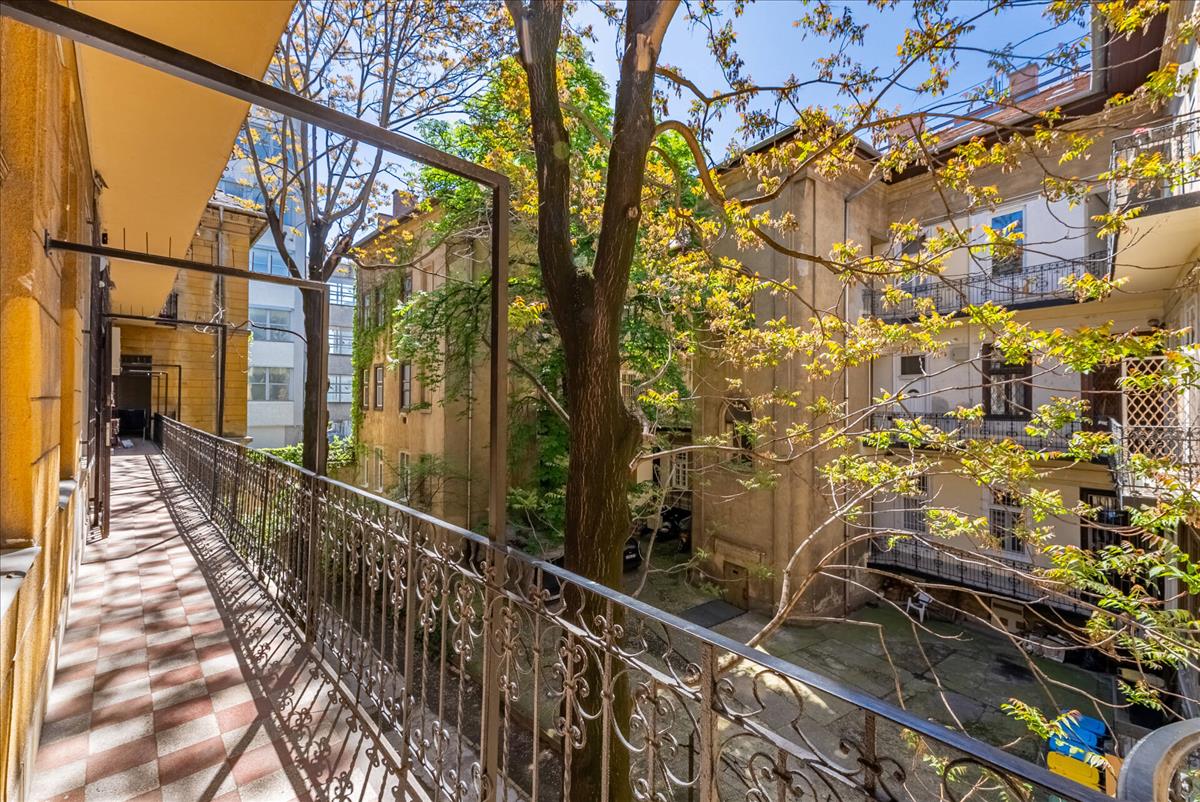 A város szívéhez közel, mégis csendes, belső kertre néző a lakás, így rendkívül csendes és egyben világos is.