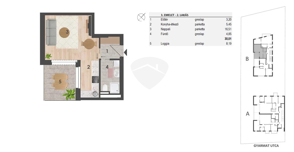 A déli tájolású otthon világos tereket kínál, amelyet a terasz tovább bővít. a lakáshoz kertkapcsolat is tartozik, ami ritka lehetőség ebben a városrészben, és valódi kertvárosi lakás hangulatát adja. a teremgarázsban biztosított parkolóhely, valamint a külön tároló praktikus kiegészítői a mindennapi használatnak.