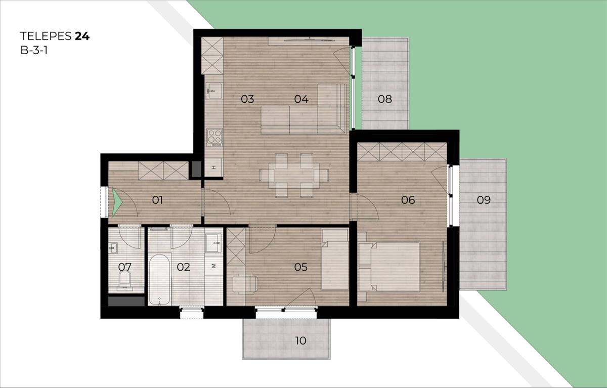 ● Az Önre szabott élettér: Az 54–84 m² közötti lakások tágas amerikai konyhás nappalival és 2–3 külön nyíló hálószobával készülnek. a burkolatok szabadon választhatók, így új otthona valóban az Ön ízlését tükrözi majd.