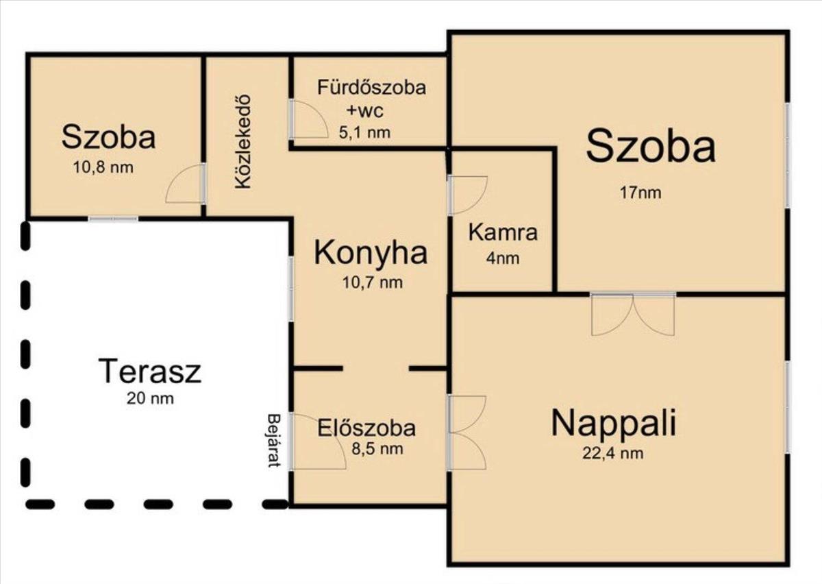 Külön említést érdemel a rendkívül tágas, „mindent elnyelő” előszoba, ahol hatalmas gardróbszekrények és rengeteg pakolási lehetőség áll rendelkezésre – ideális megoldás a rendezett mindennapokhoz. Továbbá a tágas konyhából nyílik egy kamra, ami a háziasszonyok kedvenc rejtekhelye. Az ingatlan közepes állapotú, akár egy tisztasági festés után költözhető.