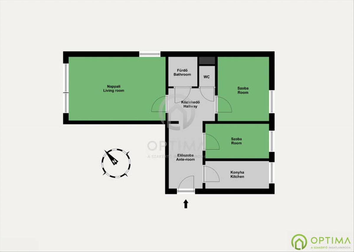 • nappali + 2 hálószoba, praktikus elrendezéssel
