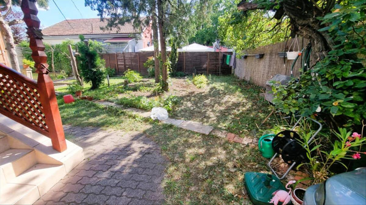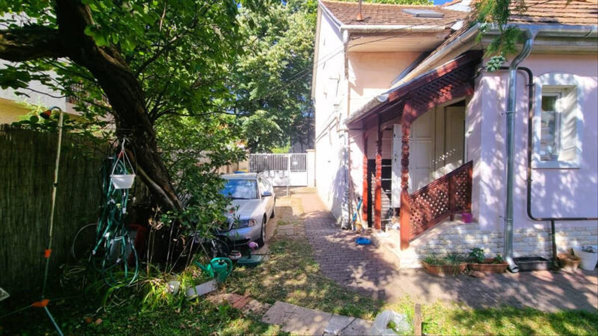 Az ingatlanhoz tartozik egy saját kertrész és egy gépkocsi beálló is.