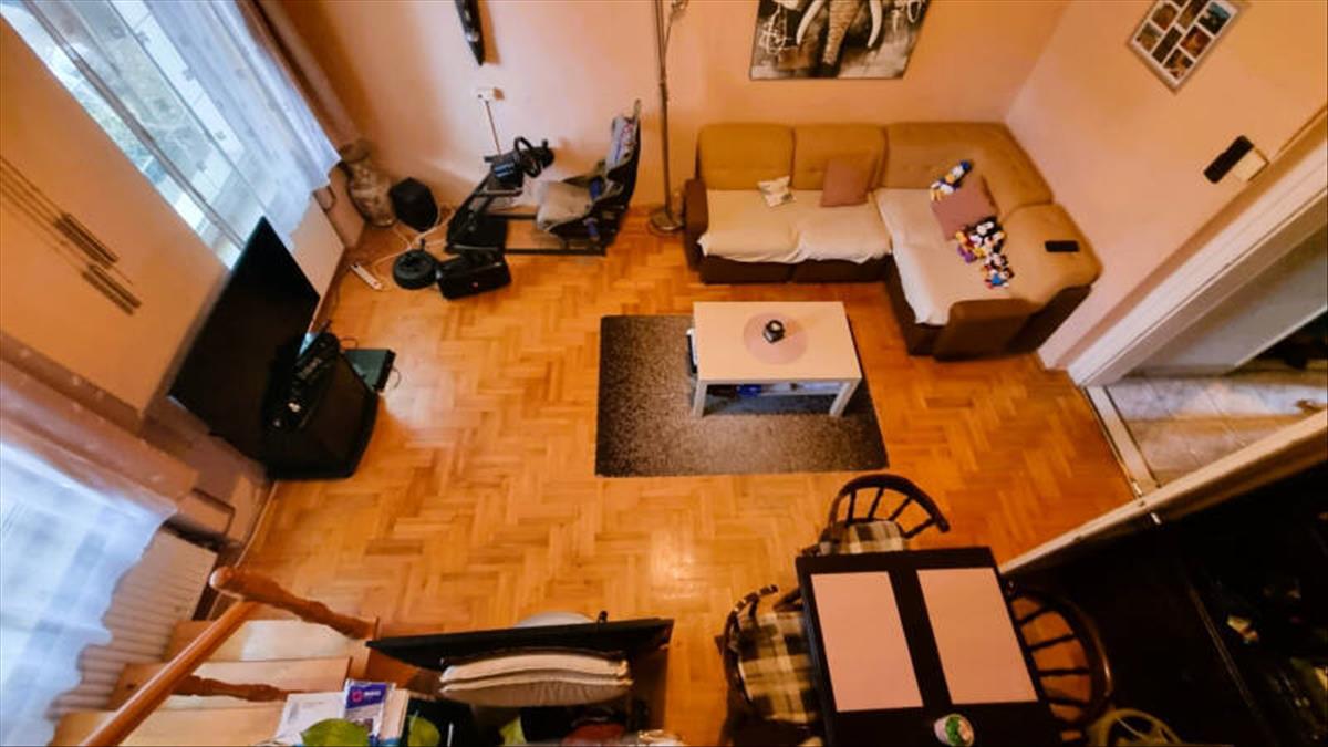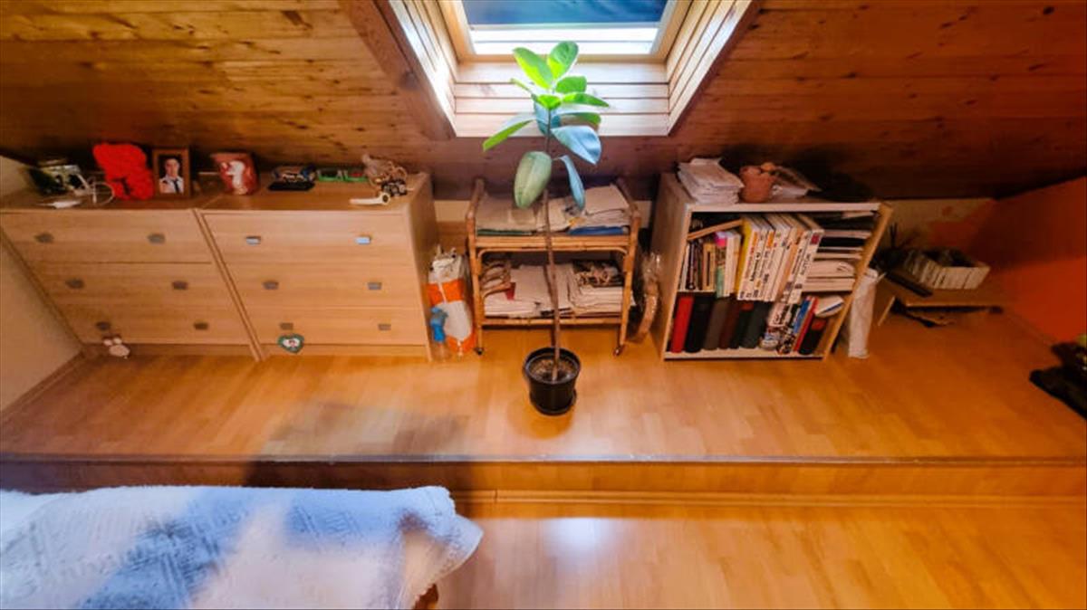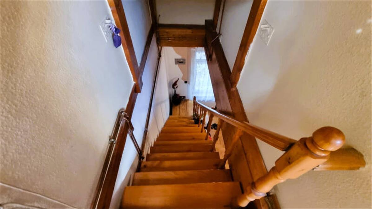 Az alsó szinten egy pici, de gyönyörű konyha, felújított fürdőszoba, tágas (22 nm) nappali, közlekedő és egy kamra lett kialakítva.