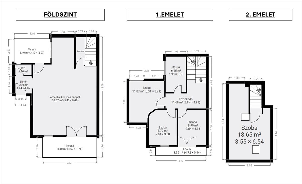 2 Terasz is nyílik erről a szintről, a privátabb mely a konyhával szomszédos a kiváncsi szemek elől elzárt, a tágasabb pedig a nappaliból nyílik, mely a maga 8 négyzetméterével akár egy sütögetéshez, borozgatáshoz is remekül szolgálhat.