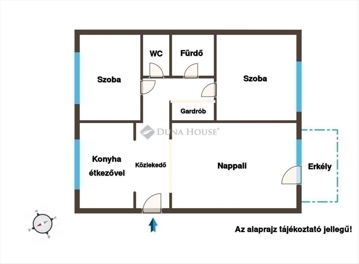 - 63 m² alapterület, nappali + 2 külön nyíló hálószoba