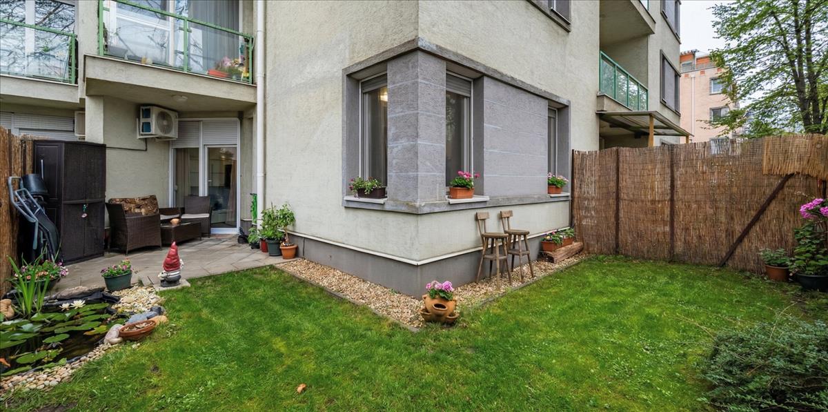 A kertkapcsolatunk pazar, burkolt teraszunk kellően privát.