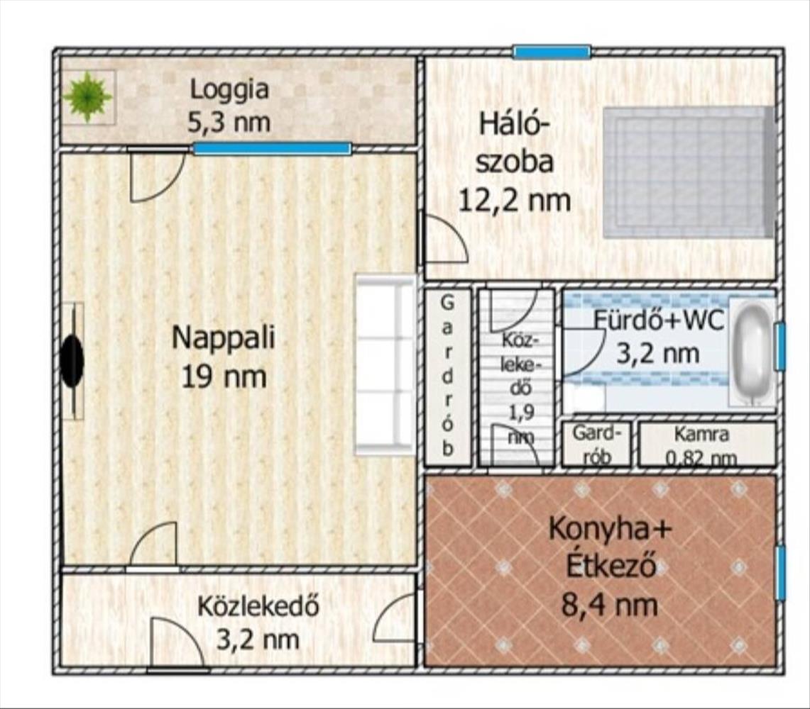 •Loggia, amely kellemes plusz teret biztosít