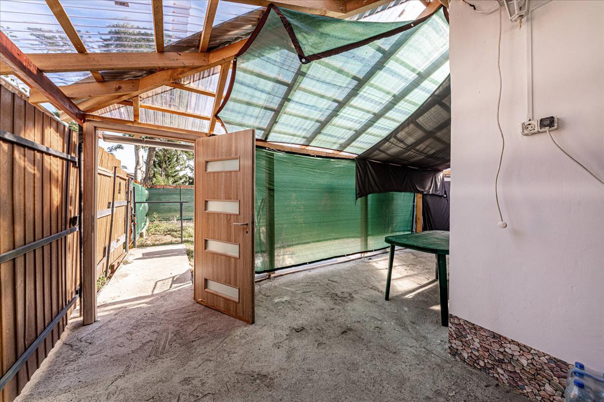 A fedett terasz egész évben használható, a kert-rész pedig tetszés szerint alakítható: veteményesnek, pihenőkertnek, vagy egyszerűen csak egy nyugalmas, zöld saroknak.