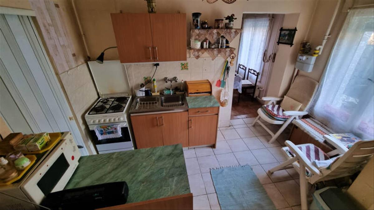 Az ingatlanba az utcáról előkerten keresztül külön bejáraton jutunk be, ahonnan az előtérrel egybenyitott konyhába érkezünk. Jobbra található a félszoba, amit jelenleg étkezőnek használnak. Balra fordulva érkezünk meg a nappaliba a folyosón továbbhaladva pedig a másik nagyszobába, mellyel szemben a kádas fürdőszoba helyezkedik el. a folyosó végén található a kijárat a hátsó teraszhoz (9 nm), a kertrészhez (25 nm). Ss a fészerhez (7 nm).