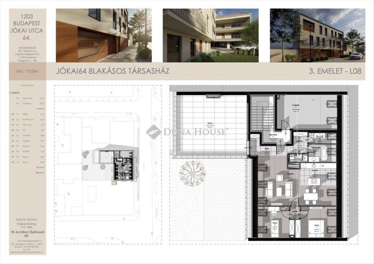 Panorámás, 77, 58 m²-es újépítésű lakás hatalmas terasszal Pesterzsébeten, egy 8 lakásos társasházban! Eladó egy 77, 58 m² alapterületű, újépítésű lakás, amely három hálószobával és tágas amerikai konyhás nappalival rendelkezik. a lakás egyik legnagyobb vonzereje a 53 m²-es terasz, ahonnan a mol torony és a Citadella látványa is élvezhető. Az ingatlan elosztása átgondolt és praktikus:- Nappali + amerikai konyha világos, központi élettér a sok ablaknak köszönhetően- 3 hálószoba külön nyíló, jól bútorozható- Háztartási helyiség extra tárolási lehetőség- Külön fürdőszoba és külön wc kényelmes mindennapi használatA fűtést és a melegvízellátást levegő-víz hőszivattyú biztosítja, amely energiatakarékos és alacsony rezsit eredményez. a lakás háromrétegű üvegezésű nyílászárókkal készül, a redőny és a zsalúzia igény esetén motoros kivitelben is kérhető. Várható átadás: 2026 első negyedévParkolóhely vásárolható:- zárt beálló: bruttó 3, 5 M Ft- nyílt beálló: bruttó 2, 2 M FtFinanszírozás: hitel igényelhetőEgyedülálló lehetőség: tágas belső terek, külön helyiségek, hatalmas terasz, ahonnan a város ikonikus pontjai tárulnak eléd.