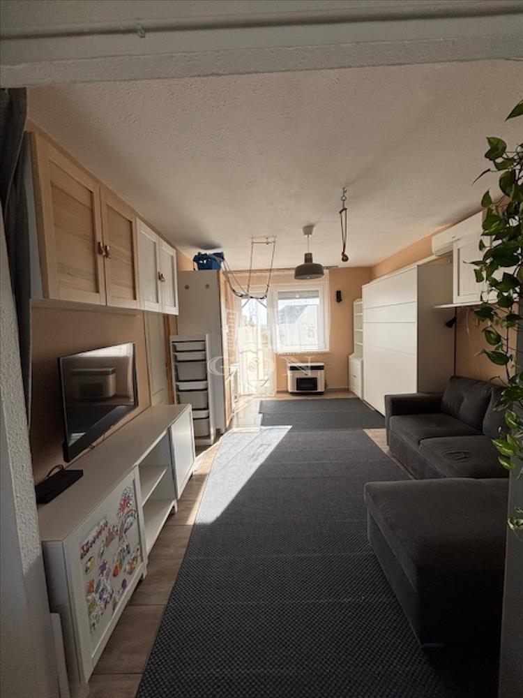 A helyiségek elosztása 1 egész és 2 félszoba, így kiválóan alkalmas akár kisebb családoknak is.