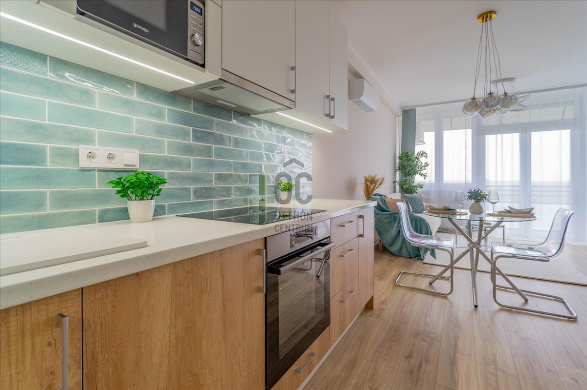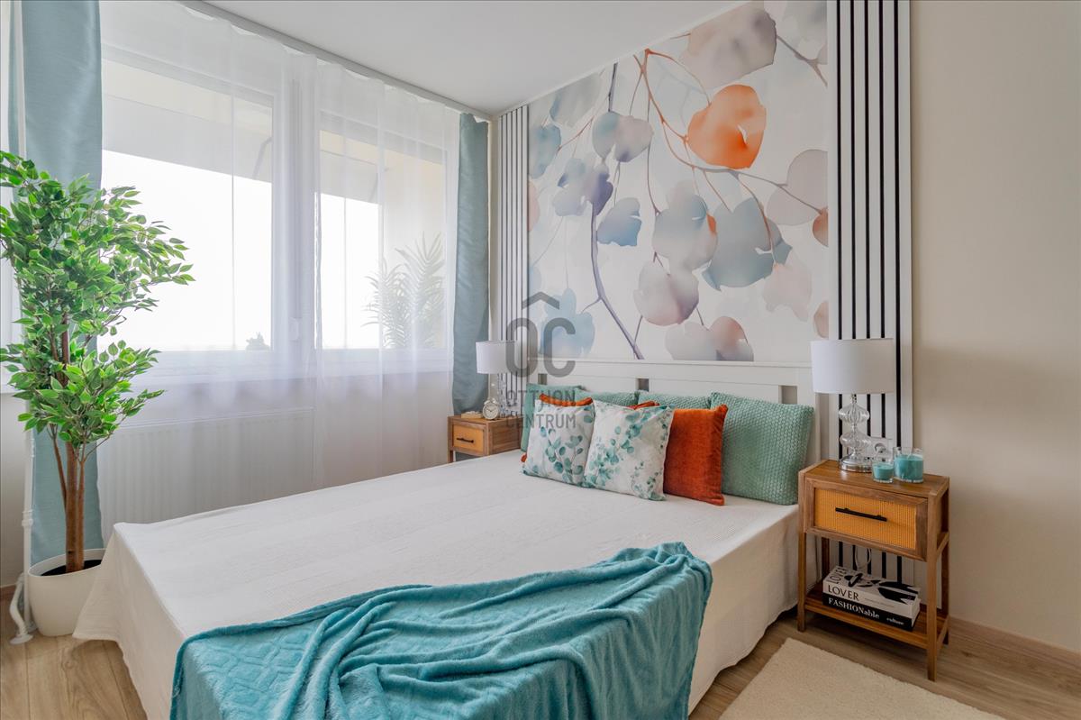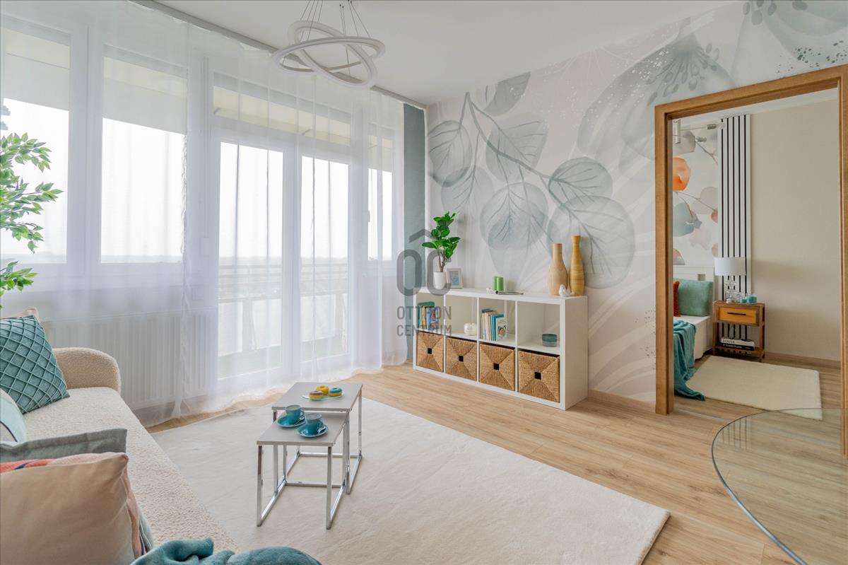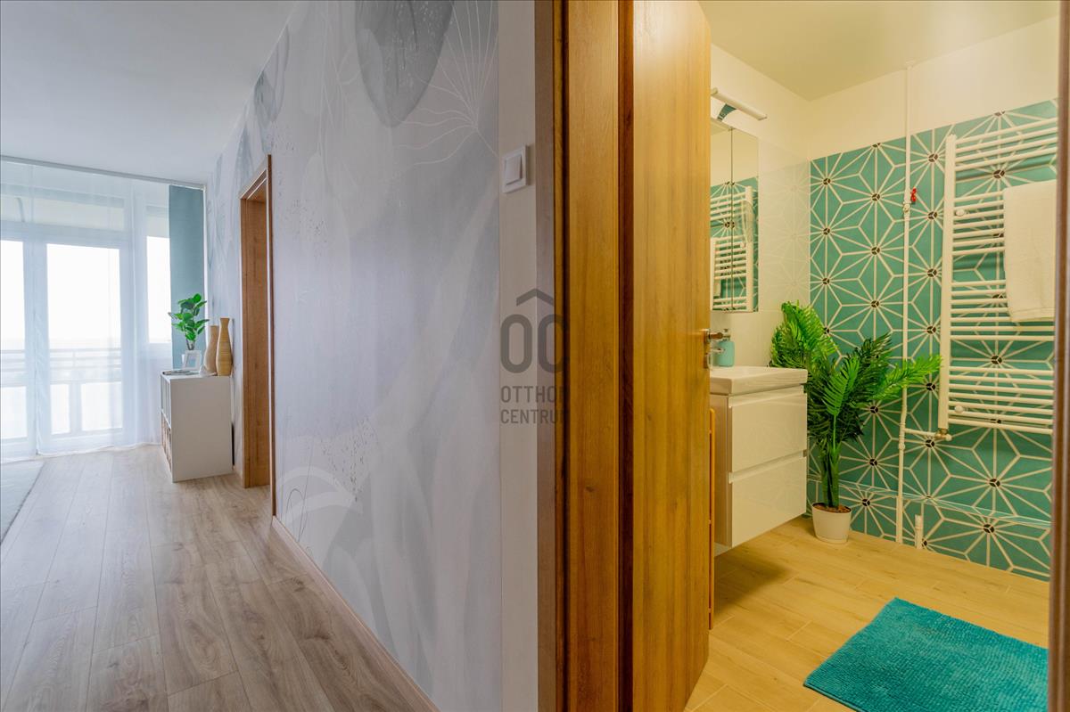 Eladó a 22. kerületben egy igényesen felújított, 45 nm + 8 nm erkélyes, 10. emeleti, 2 szobás csúsztatott zsalus lakás.