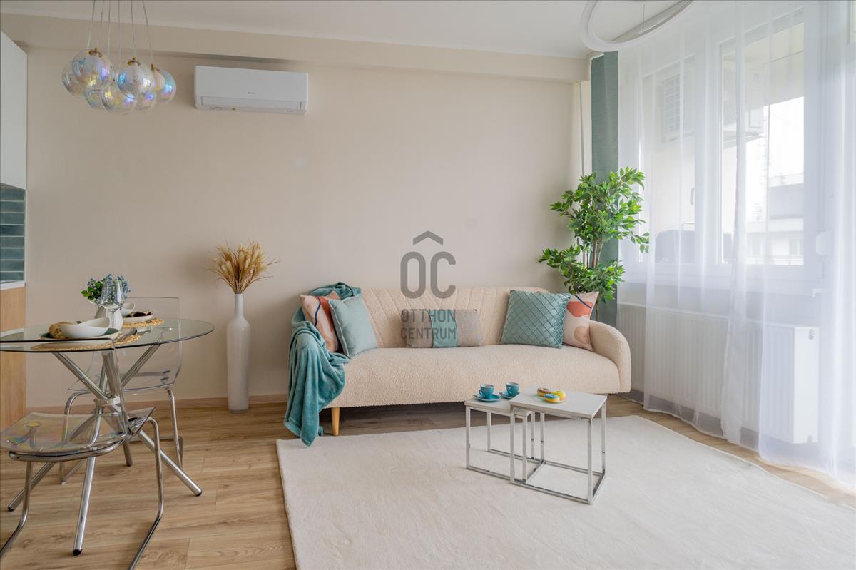 Az ingatlan felújítása során módosításra került az alaprajz, így a lakás belső elrendezése kiváló, nagy és élhető terekkel rendelkezik. a 8 nm -es erkélyről örökpanoráma tárul elénk.