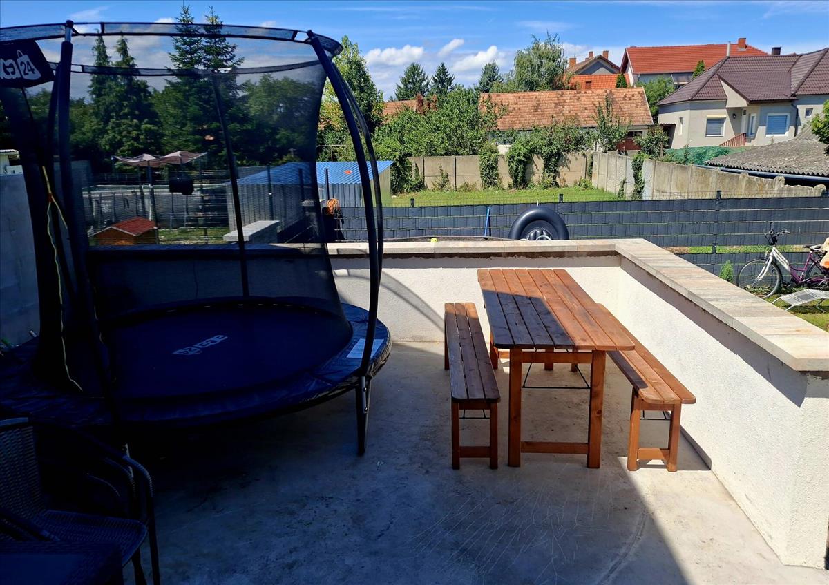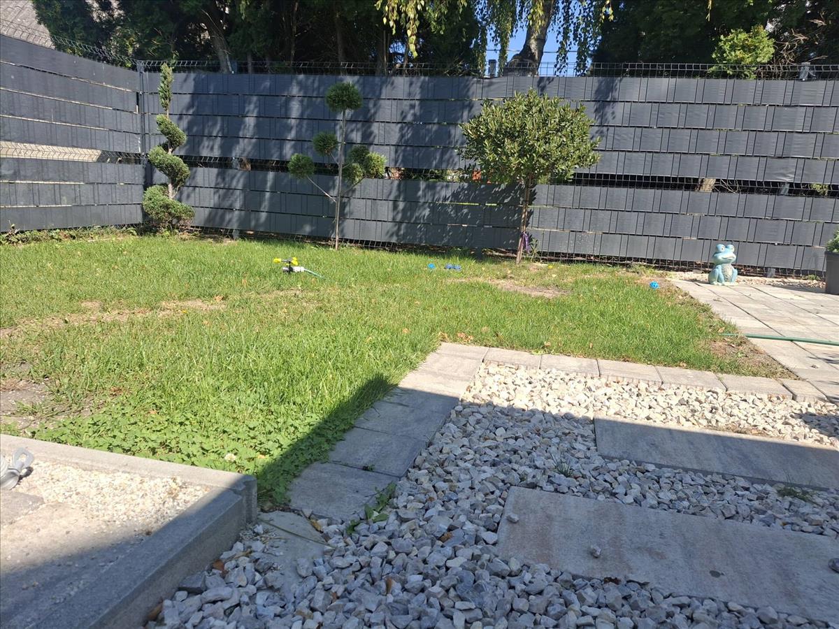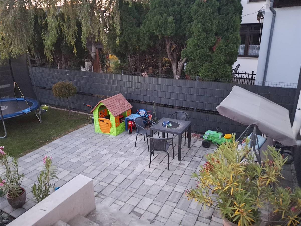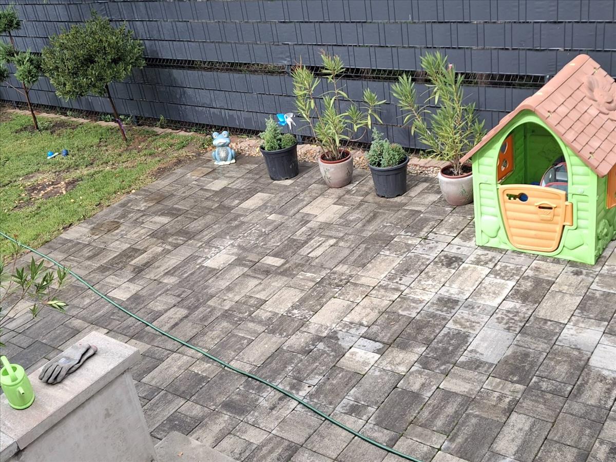 -55 m2 elkerített hátsó kert nagyobb részt térkövel