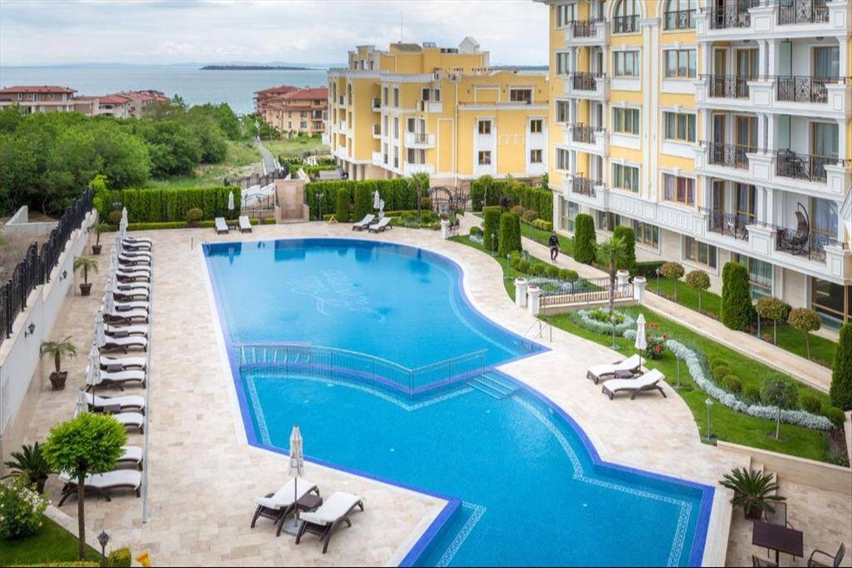 Saint Vlas elegáns üdülőövezetében, a közkedvelt Villa Florence komplexumban eladó egy 3. emeleti, 105 m²-es apartman, két hálószobával, tágas nappalival, konyhával, fürdőszobával és erkéllyel. Pihenési, vagy akár befektetési lehetőség a Fekete-tenger partján!