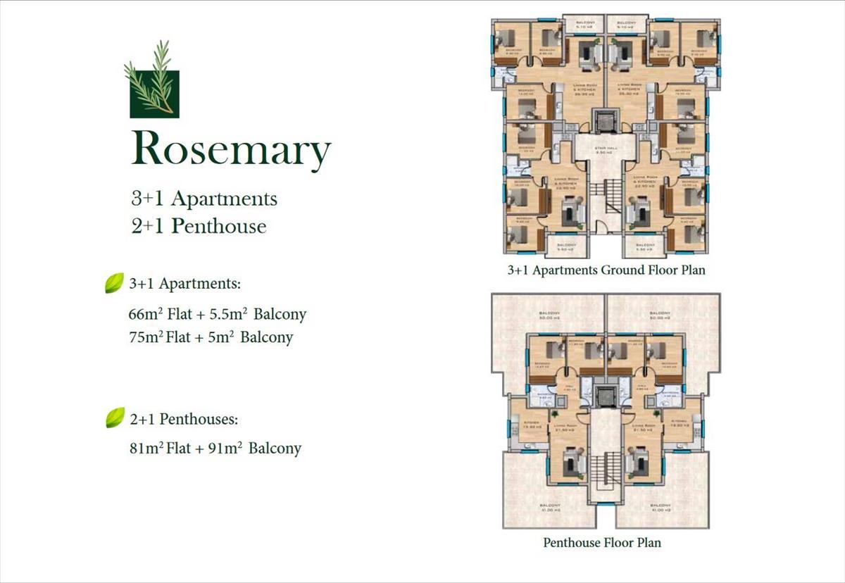 Rozmaring 3+1 apartmanok földi terve Penthouse alaprajz 3+1 apartman 2+1 penthouse 3+1 apartman: 2+1 penthouse: 66m2 lapos + 5, 5 m2 erkély 75m2 lapos + 5m2 erkély 81m2 lapos + 91m2 erkély