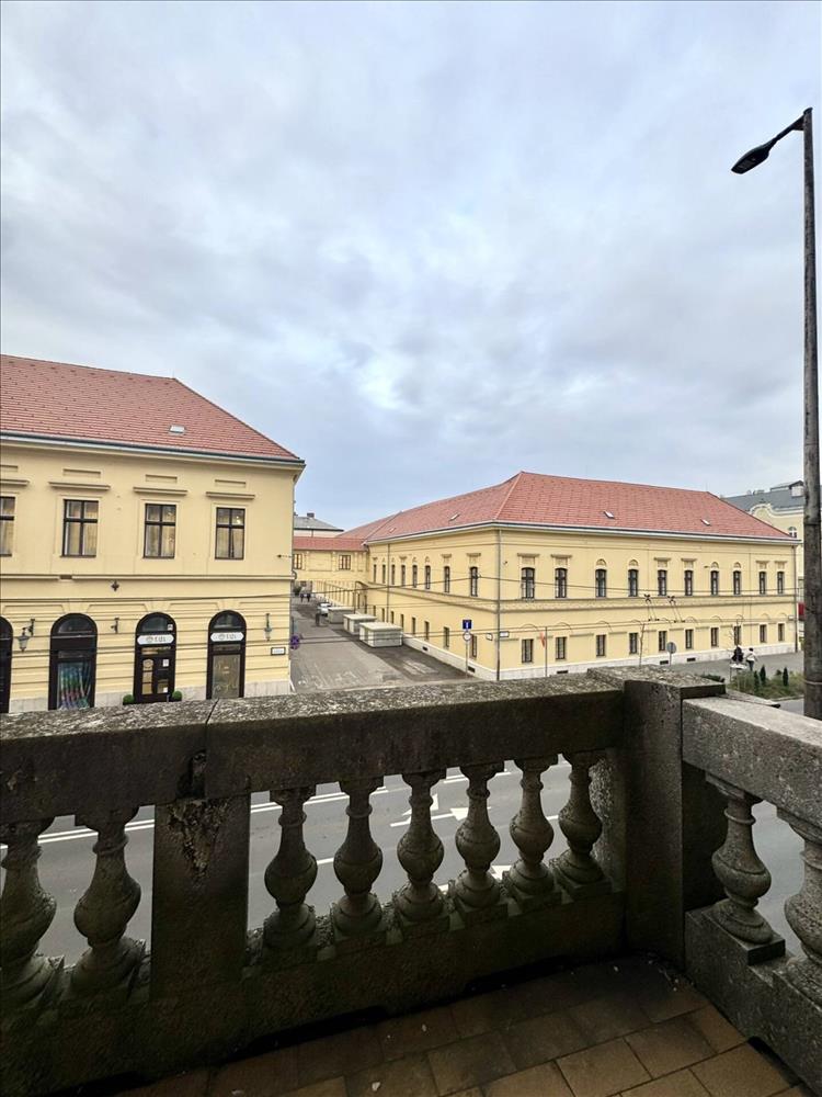 Erkély hangulatos belvárosi kilátással, panorámával a Kossuth utca jellegzetes épületeire