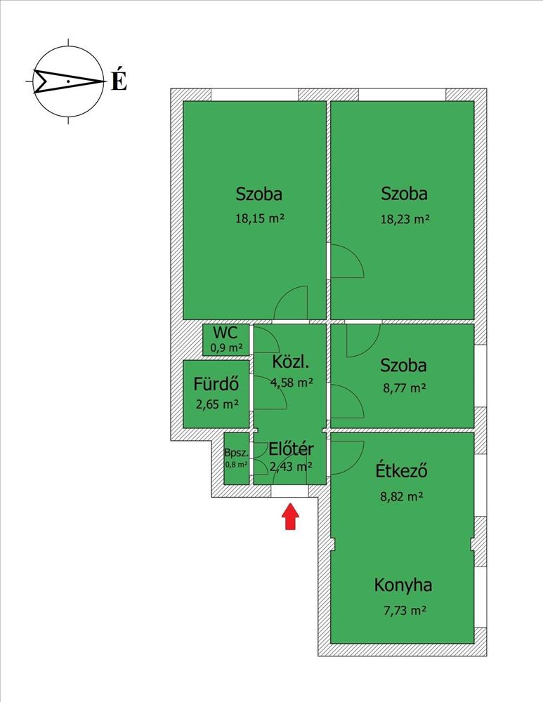 -Napfényes, világos, sarki fekvésének és észak-nyugati tájolásának köszönhetően