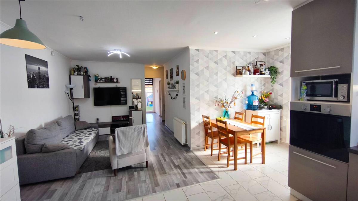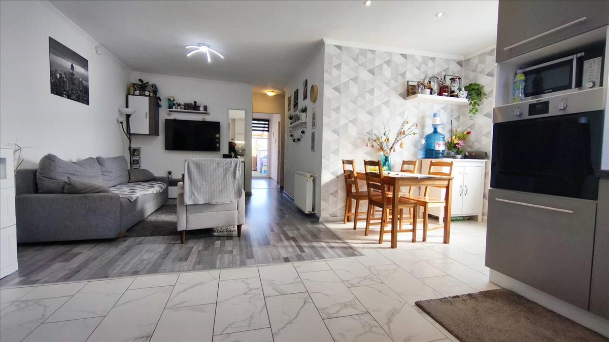 Délegyházán kínálunk megvételre egy bruttó 73 m²-es, kiváló elrendezésű sorházi lakást, amely ideális választás lehet családok vagy párok számára. Az ingatlanban egy tágas amerikai konyhás nappali és étkező kapott helyet, emellett két külön nyíló hálószoba, egy fürdőszoba, külön wc, valamint egy praktikus tároló is megtalálható.